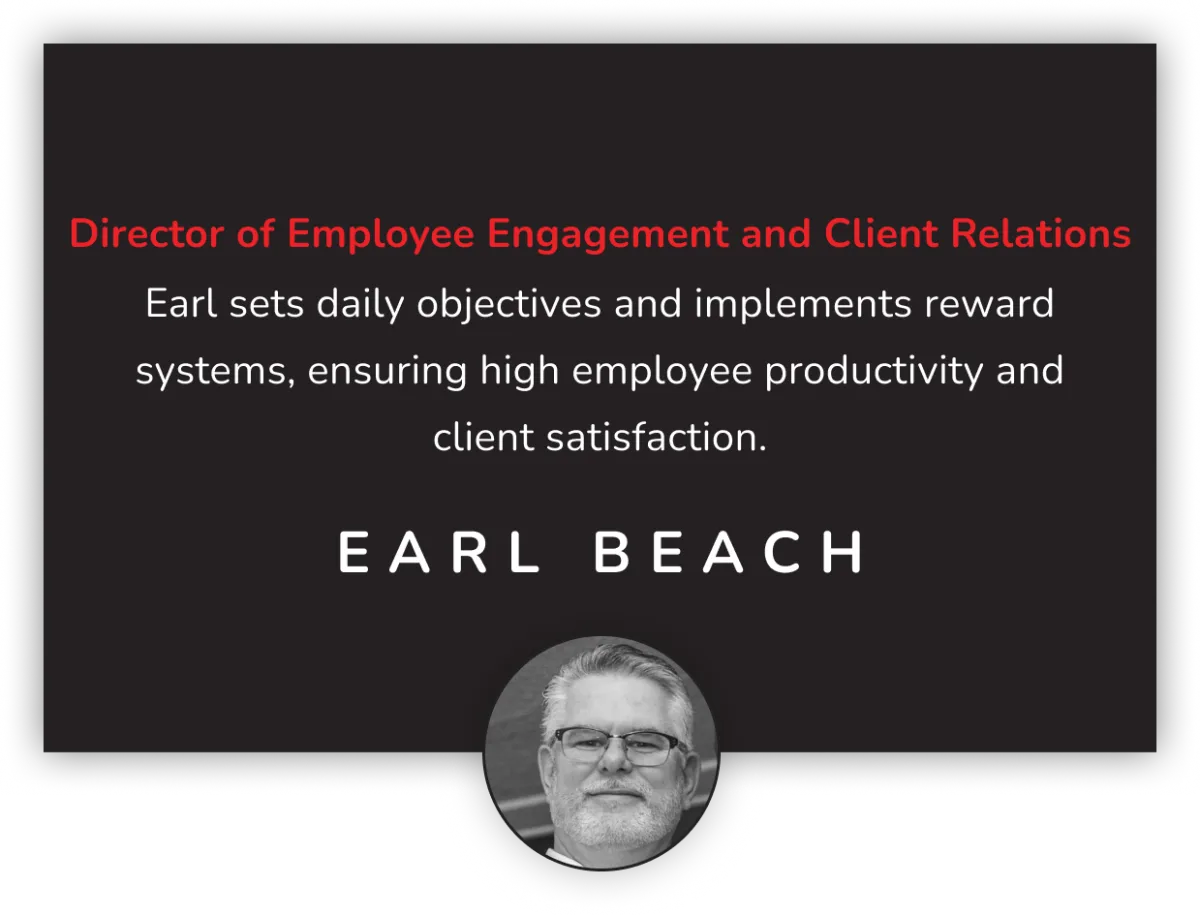 Earl sets daily objectives and implements reward systems, ensuring clients expectations are always being exceeded.