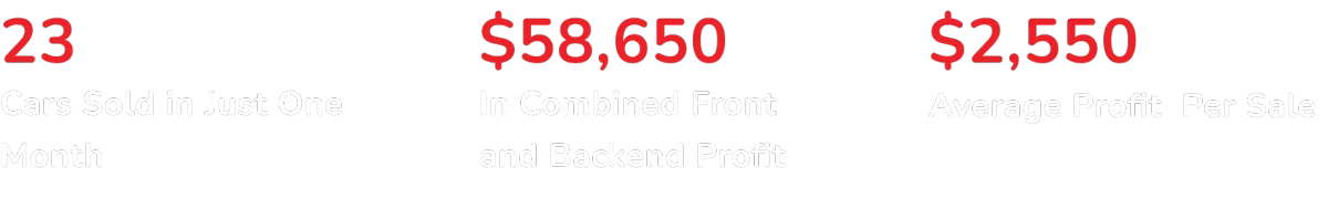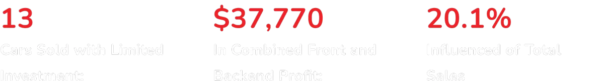 In August 2023, we partnered with a multi-brand dealer specializing in Chrysler, Dodge, Jeep, and RAM vehicles. With an investment of $4,400 per month, the dealership experienced remarkable sales performance. Our all-in-one digital marketing strategy was tailored to accommodate the diverse range of vehicles and offers, resulting in game-changing returns.