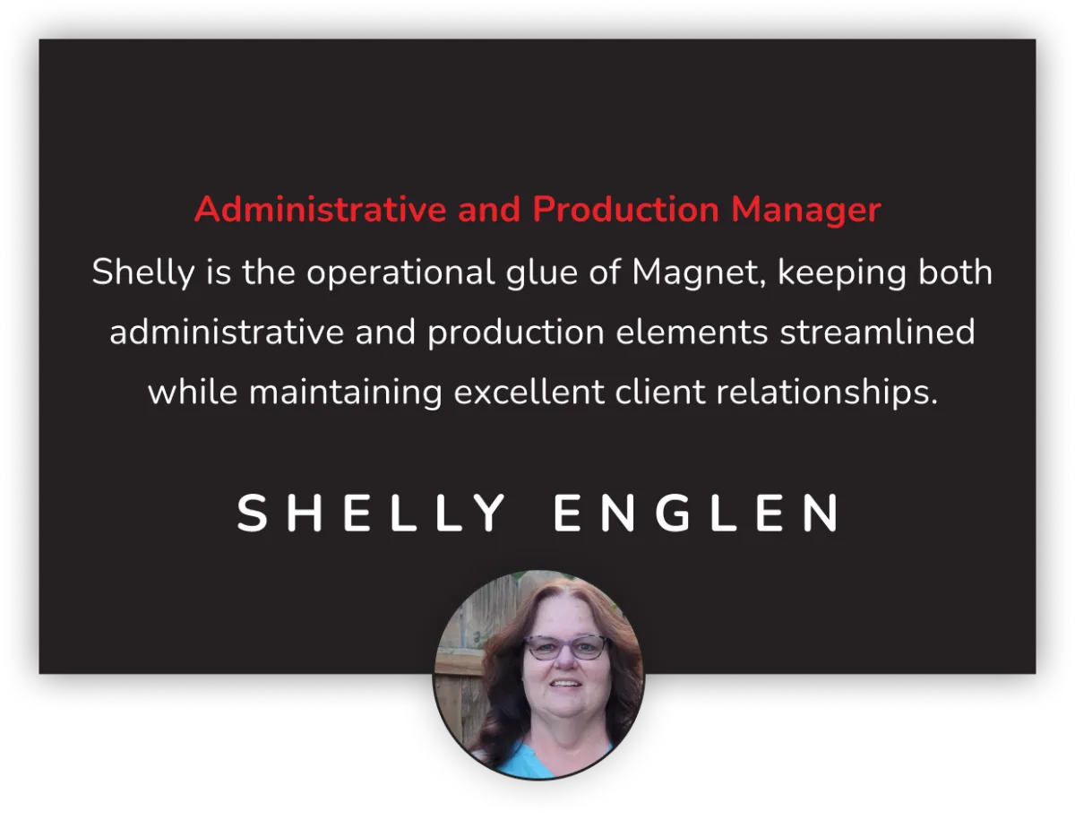 Shelly is the operational glue of Magnet, keeping both administrative and production elements streamlined while maintaining excellent client relationships.